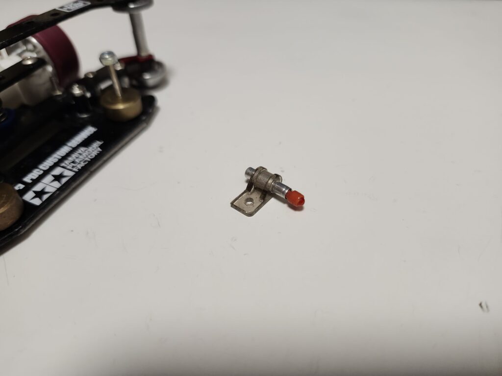 まぁもともとは暗い海で使うための浮きなので白も目立つんでしょうけど、日中に走らせているミニ四駆に付けるとあんまり目立ちません。